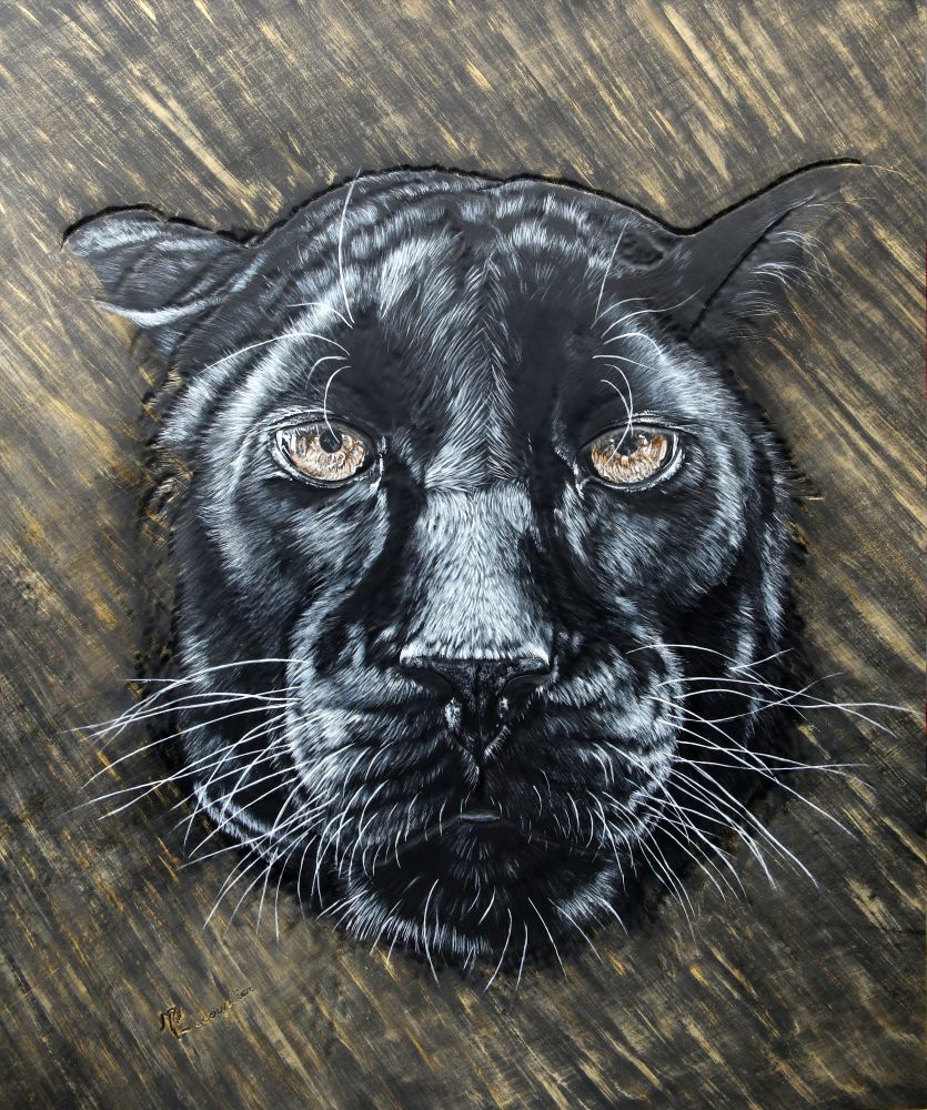 Panthère en or, une panthère noire aux yeux d’or qui transperce la lumière.